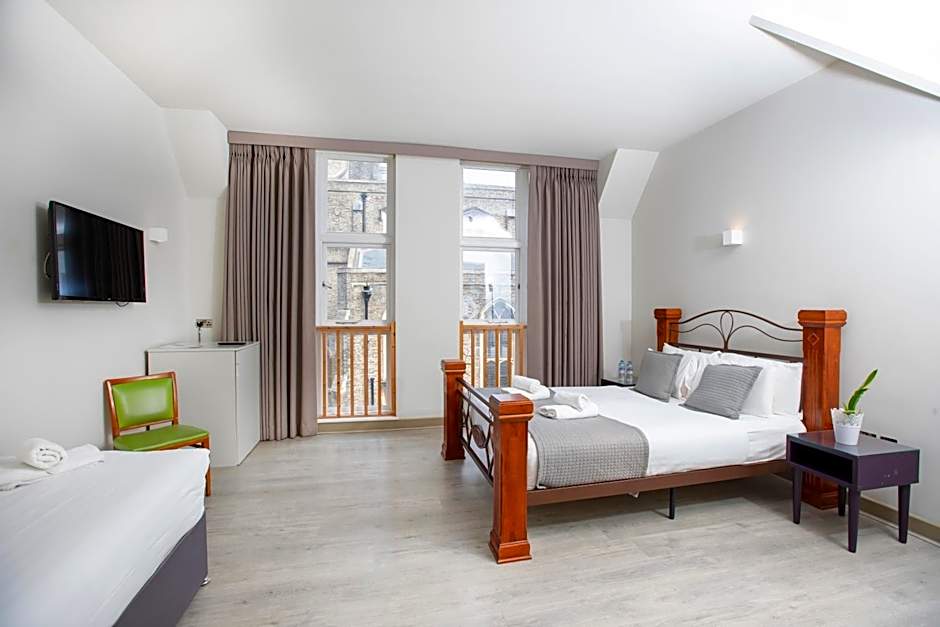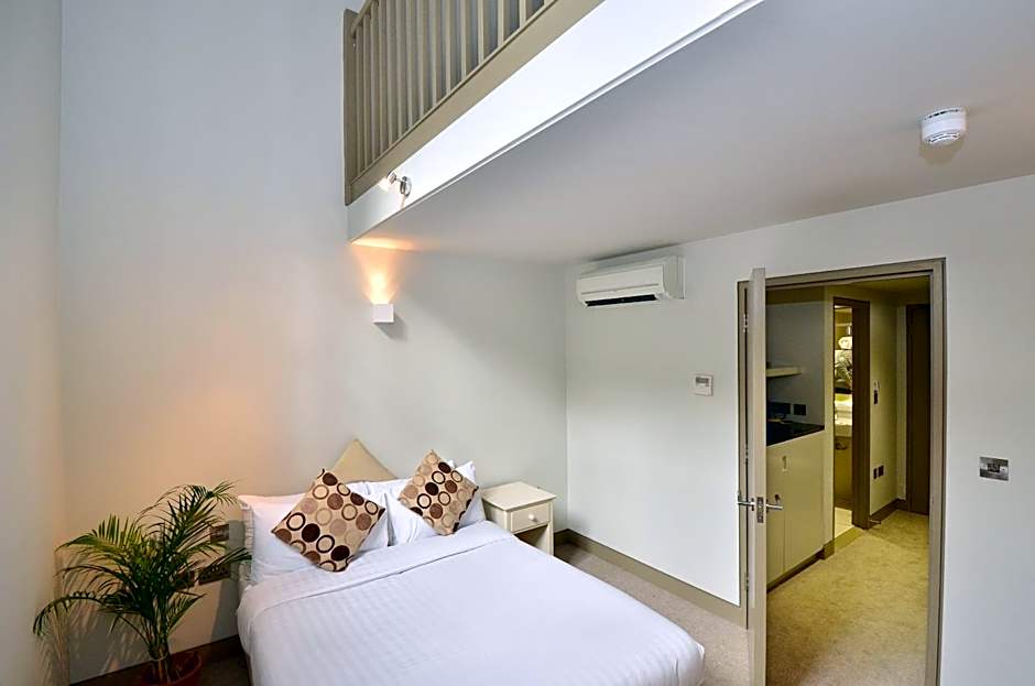 The bespoke shower room has an oversize shower, wash hand basin with back lit vanity mirror, toilet, complimentary toiletries and is fully tiled throughout. Leading from the hallway is a staircase to the spacious upper level of the duplex which has a large Queen size bed, a flat screen TV, bedside tables and wardrobe.