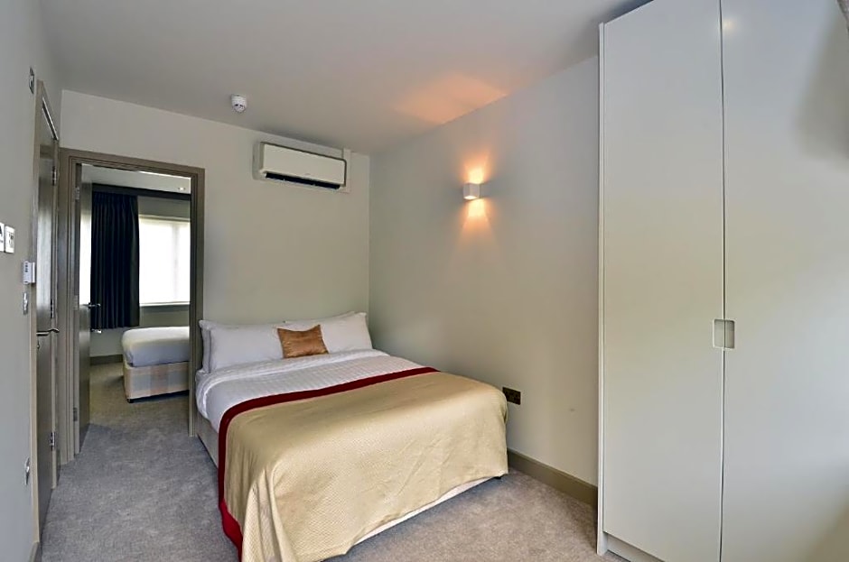 The bespoke shower room has an oversize shower, wash hand basin with back lit vanity mirror, toilet, complimentary toiletries and is fully tiled throughout. Leading from the hallway is a staircase to the spacious upper level of the duplex which has a large Queen size bed, a flat screen TV, bedside tables and wardrobe.